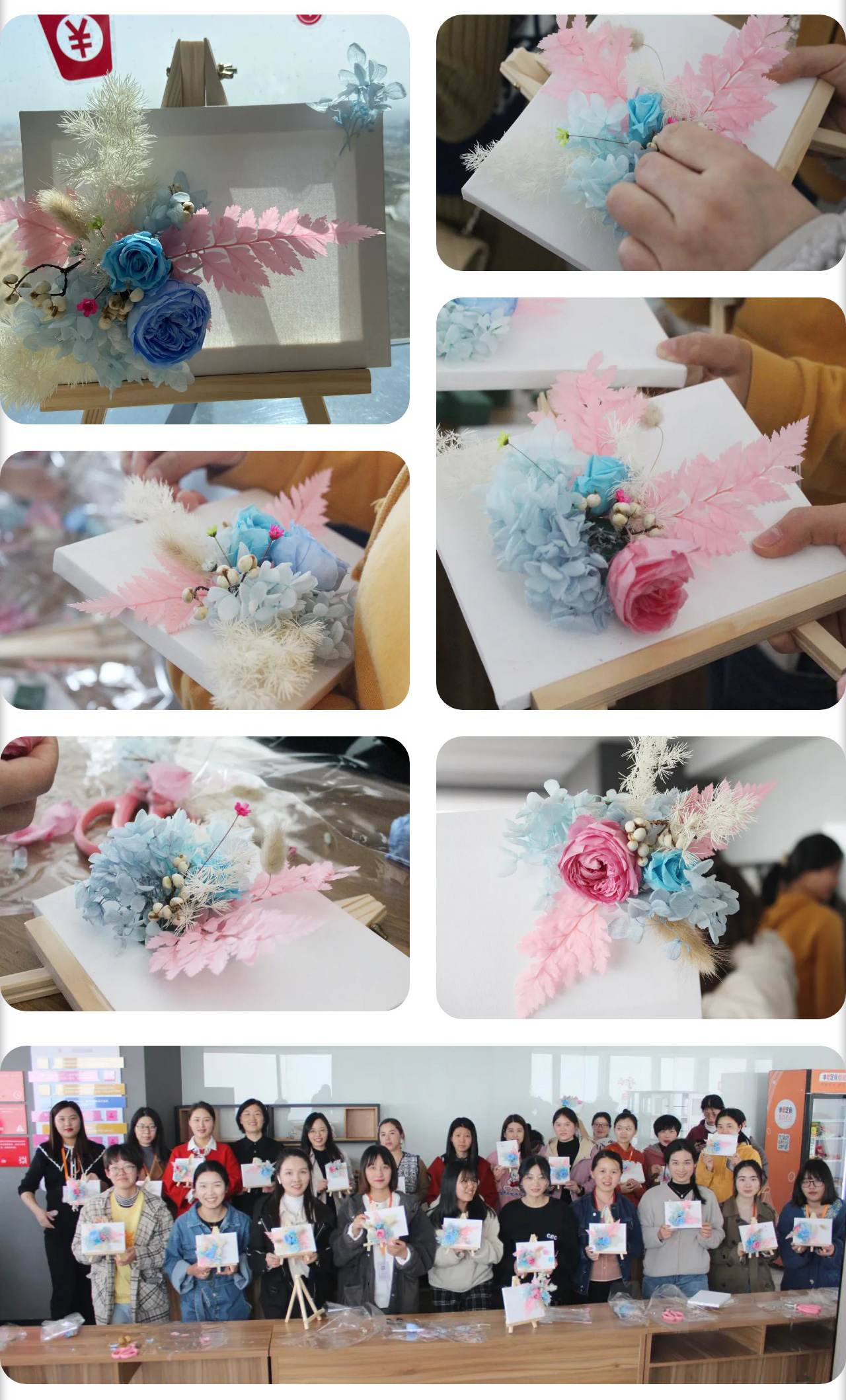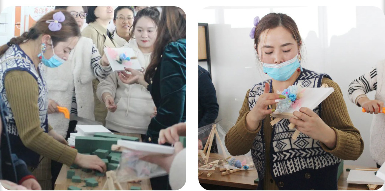 拿到了制作材料后,英国上市公司官网365女神们兴致勃勃地在老师的指导下开始动手,在五彩斑斓的花朵中,巧手翻飞,大家用匠心创造美好、装点生活,各自创作出独一无二的花艺作品。