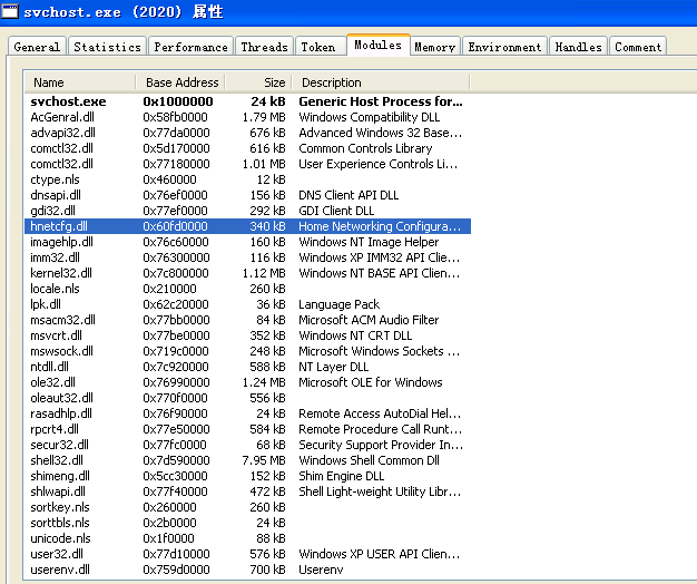 对于可疑进程,需要将进程所加载的模块都检查一下,例如利用ProcessExplorer,双击可疑进程,即可查看其加载的模块如下: