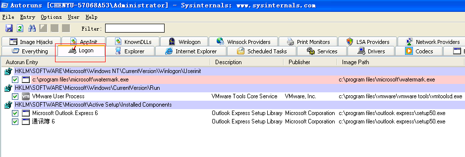 排查Logon启动项