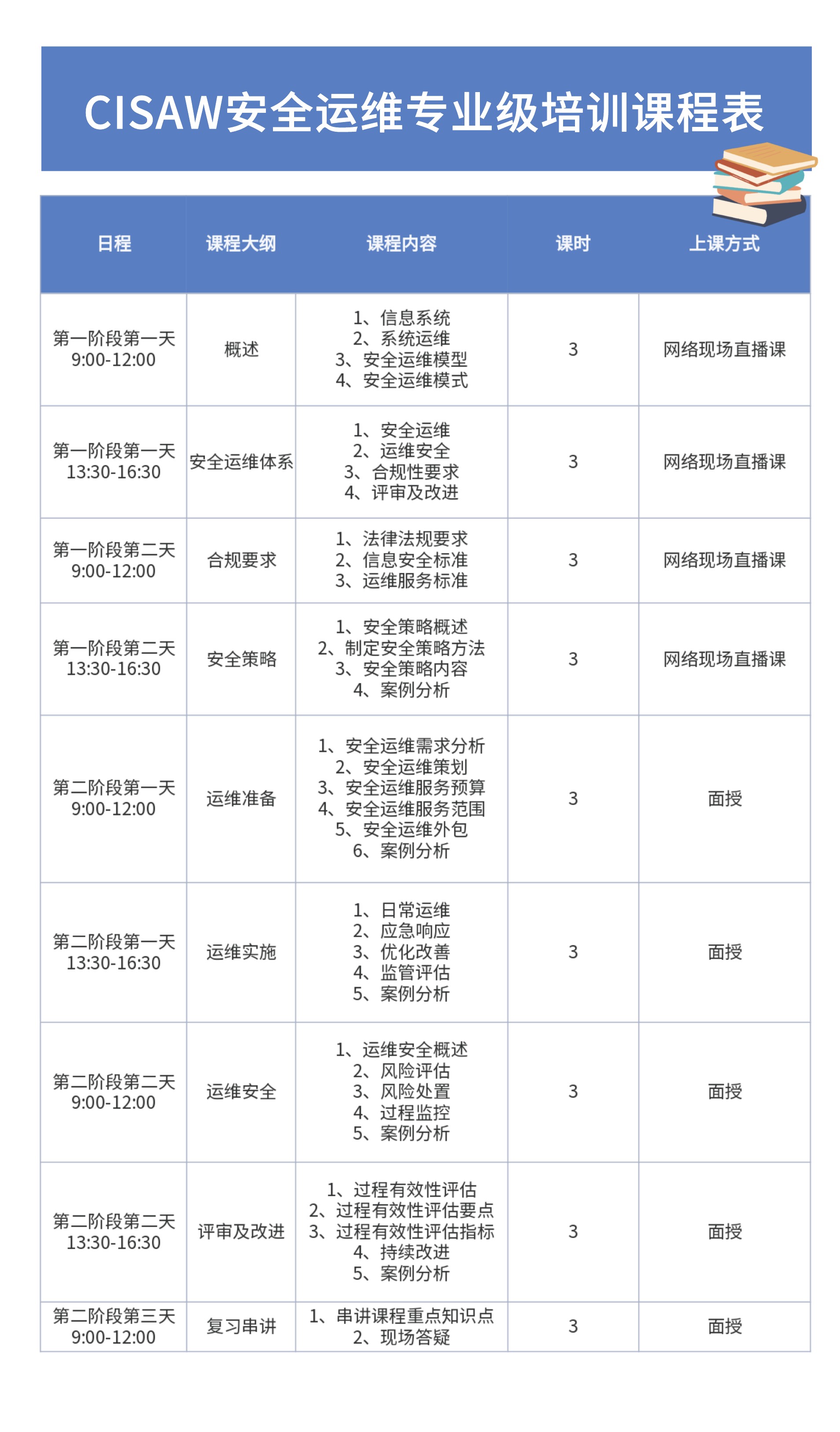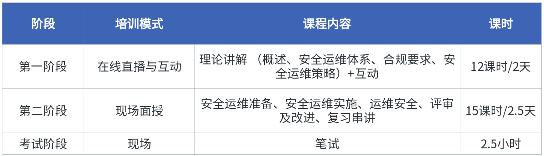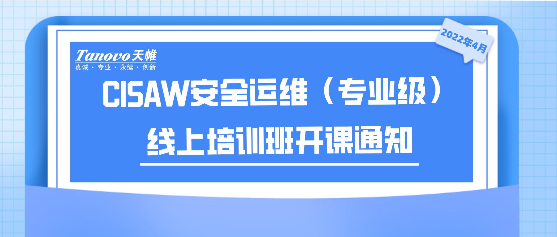 为尽可能降低疫情对国家信息安全保障人才队伍建设的影响,信息安全保障人员认证(CISAW)“安全运维”培训拟通过线上网络直播结合线下面授的方式开展。现将培训的具体模式通知如下: