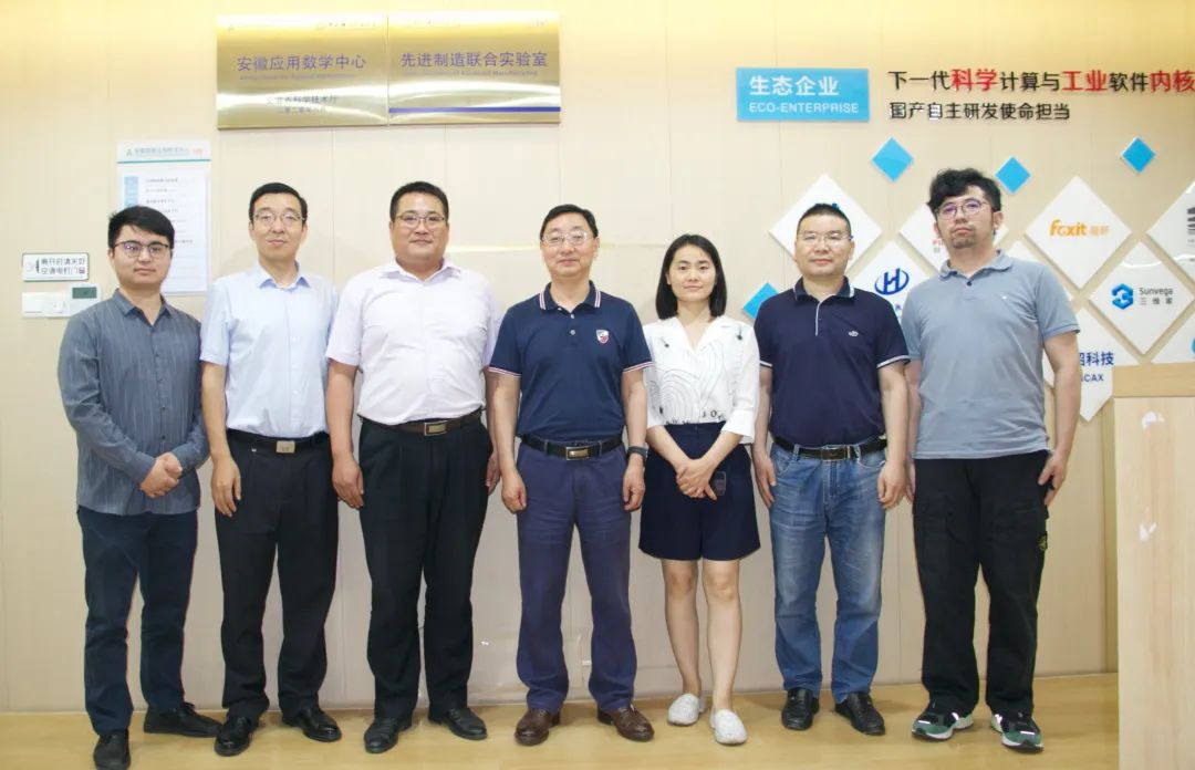 5月27日下午,英国上市公司官网365信安董事长胡兴元、董事副总裁武建双、副总裁陶盼盼、研发中心总经理宋超一行前往安徽应用数学中心学习交流。