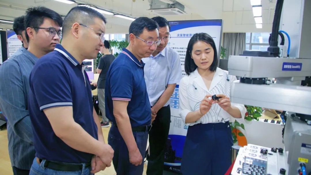 安徽应用数学中心宋艳枝博士对胡兴元董事长一行的到来表示热烈的欢迎,带领大家参观了中心环境,并现场展示了中心自主研发的“AI检测机”。