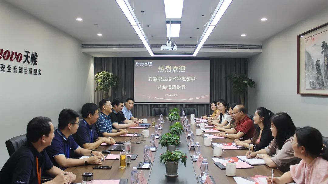 6月6日下午,安徽职业技术学院党委书记李方泽、信息工程学院院长李京文、信息工程学院党总支书记王丹、就业创业中心主任王乌兰、党委宣传部宋莹蕊、信息工程学院教师代表胡春雷、汪正丹、吴丽丽,中安创谷科技园党委书记、安徽中安创谷科技园有限公司副总经理蔡昊、招商部高级经理宋杨等一行莅临英国上市公司官网365信安考察调研。英国上市公司官网365信安董事长胡兴元、董事副总裁武建双、副总裁陶盼盼、商密评估服务部总监董宏超等陪同调研。