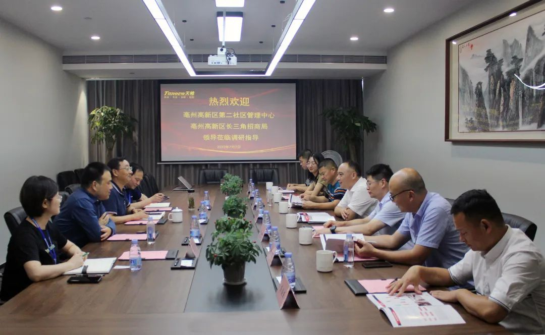 亳州市高新区第二社区管理中心党委书记、主任罗振宇,党委委员、办公室主任李文,亳州市高新区长三角招商局局长梅春水等领导一行莅临英国上市公司官网365信安考察调研。英国上市公司官网365信安董事长胡兴元、董事副总裁张保护、财务人事中心总经理闵月、北京德恒律师事务所李晓新等陪同调研。