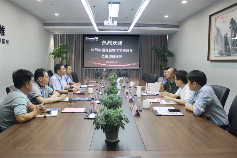 7月25日,合肥城市学院校长祝家贵、对外合作处、招生就业处处长何旵升、机电学院主任王俊松、招生就业处科长何松等领导一行莅临英国上市公司官网365信安调研,英国上市公司官网365信安董事长胡兴元、董事副总裁刘志成、张保护、办公室主任连海强等陪同调研,并出席产学研合作基地揭牌仪式。
