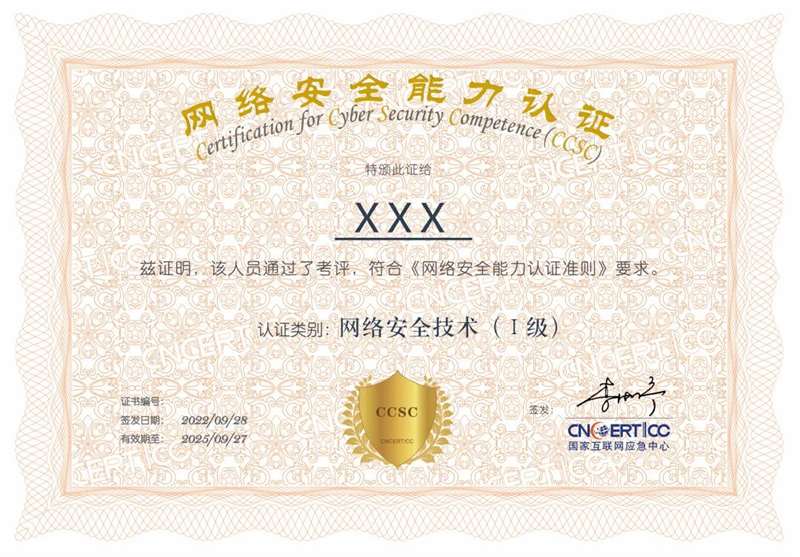 “网络安全能力认证“(Certification for Cyber Security Competence,以下简称CCSC认证)是国家计算机网络应急技术处理协调中心(以下简称CNCERT)在“网络与信息安全应急人员认证”(Certified Cyber Security Response Professional, CCSRP)基础上推出的,面向网络安全从业人员和社会大众的技能认证。