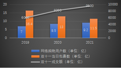 需要我们重视起来据统计,从2019年至2021年,参与网购的用户从7亿人增加至9.2亿人左右;包裹数量一直维持在10亿以上;成交额已逐步接近至万亿元。