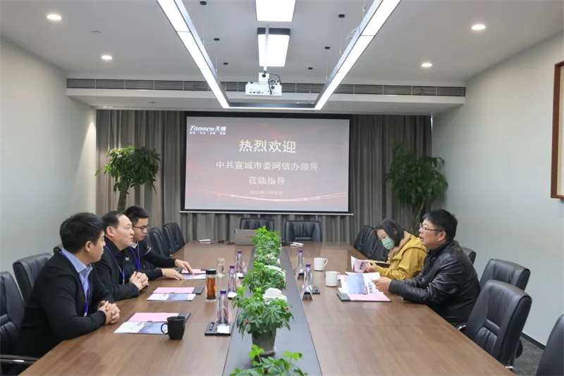 11月30日,宣城市网信办胡峰副主任、汪薇科长莅临英国上市公司官网365信息调研指导工作。英国上市公司官网365信息董事副总裁张保护、副总裁陶盼盼、李佳等陪同调研。