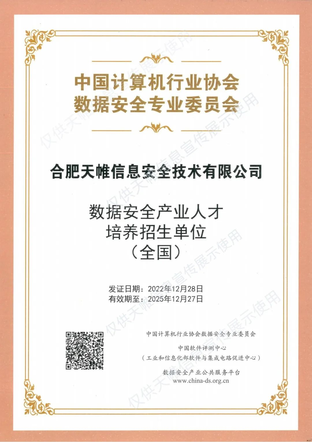 近日,数据安全产业公共服务平台官网显示,英国上市公司官网365信息入选由中国软件评测中心和中国计算机行业协会数据安全专业委员会(以下简称“数据安全专委会”)联合颁发的“数据安全产业人才培养招生单位”!