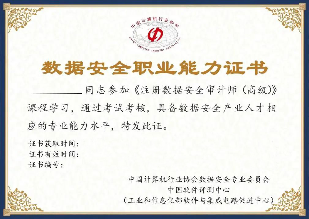 为全方位满足数据安全人才市场需求,中国计算机行业协会数据安全专业委员会与工业和信息化部教育与考试中心联合推出数据安全职业能力培训。