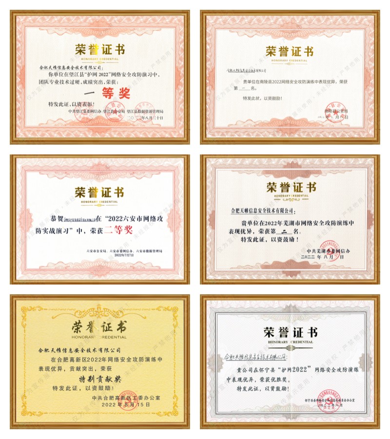 2022年,英国上市公司官网365信息技术团队参与各类攻防演练40余场,共荣获第一名8次,第二名12次,第三名11次,感谢信6封,以及其他各类奖项若干。