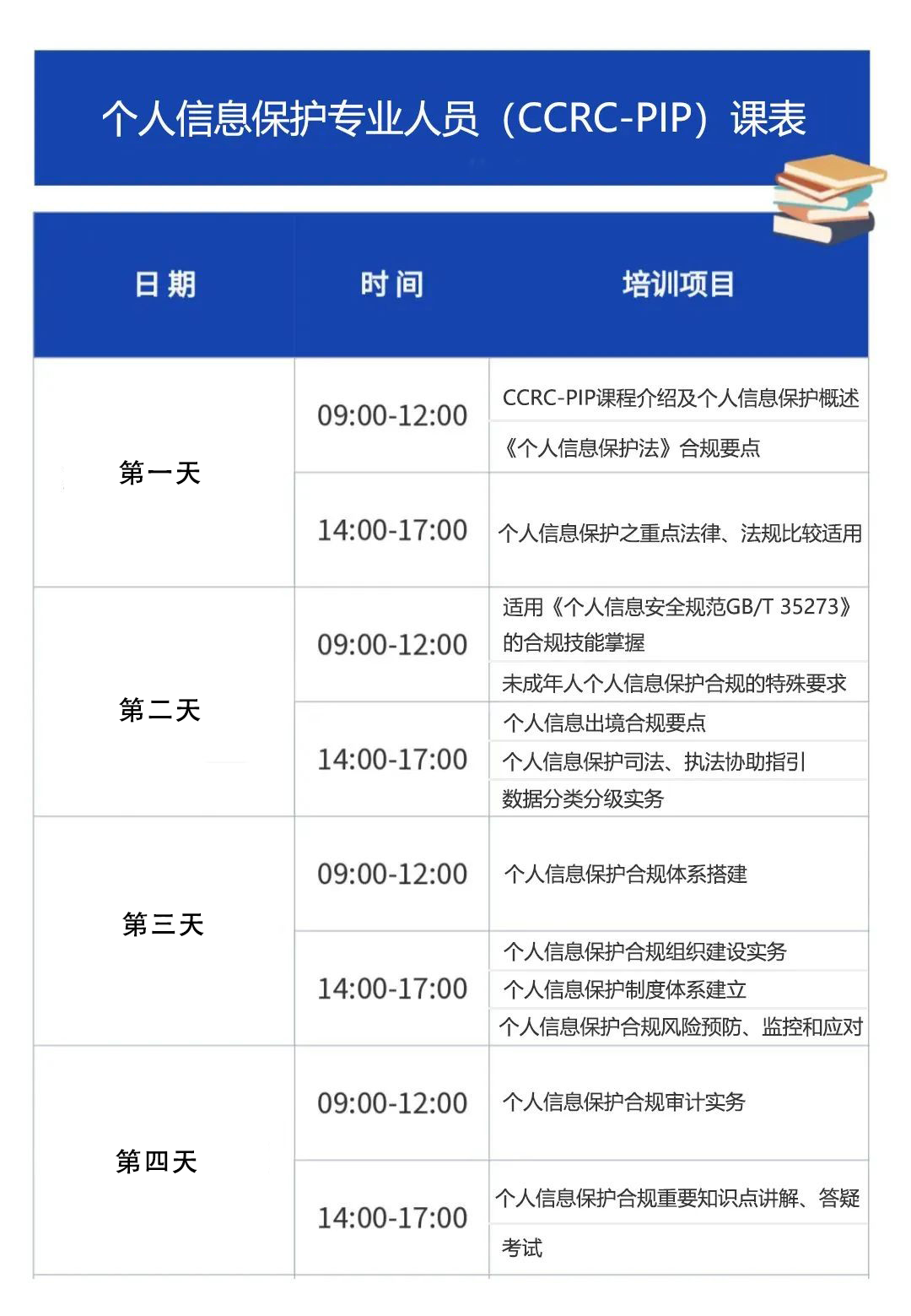对个人信息保护合规(数据合规)领域有兴趣且愿意系统学习的人士。课程安排培训时间:2023年3月