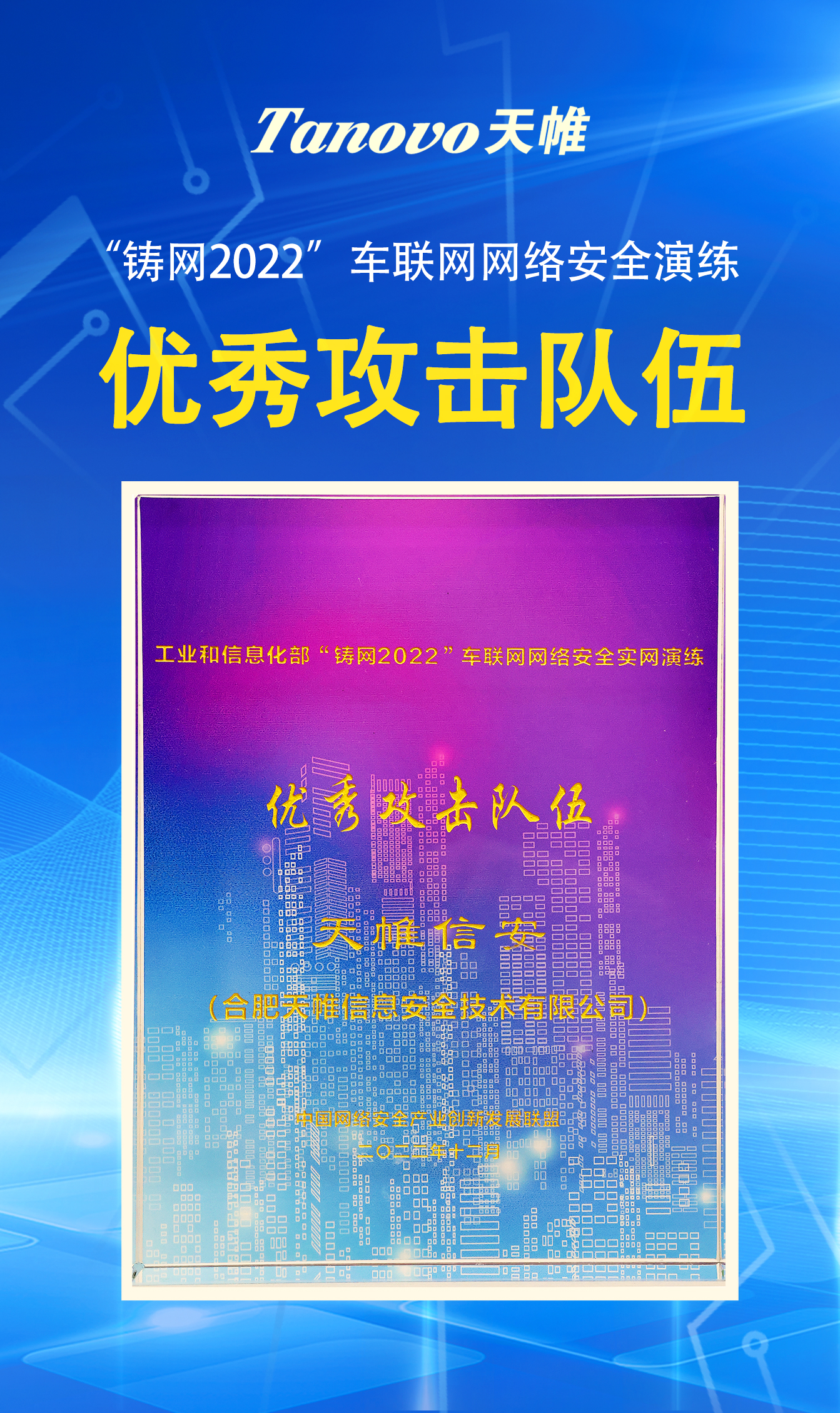2023年2月23日,工业和信息化部网络安全管理局在“2023年中国网络和数据安全产业高峰论坛”发布了“铸网2022”网络安全演练表现突出单位名单,并为演练优秀攻击队伍、优秀防守实践企业和优秀技术支撑单位颁奖。