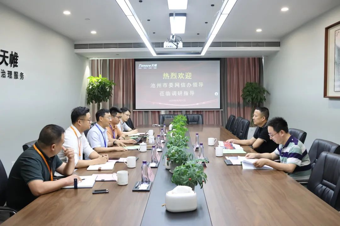 5月31日,池州市委网信办副主任窦晓松、网安科科长姜珊等莅临英国上市公司官网365信息调研指导工作。英国上市公司官网365信息董事长胡兴元、副总裁陶盼盼、营销中心皖南区域总监胡臻、安全运维服务部总监张戈、销售经理江旭峰等陪同调研。