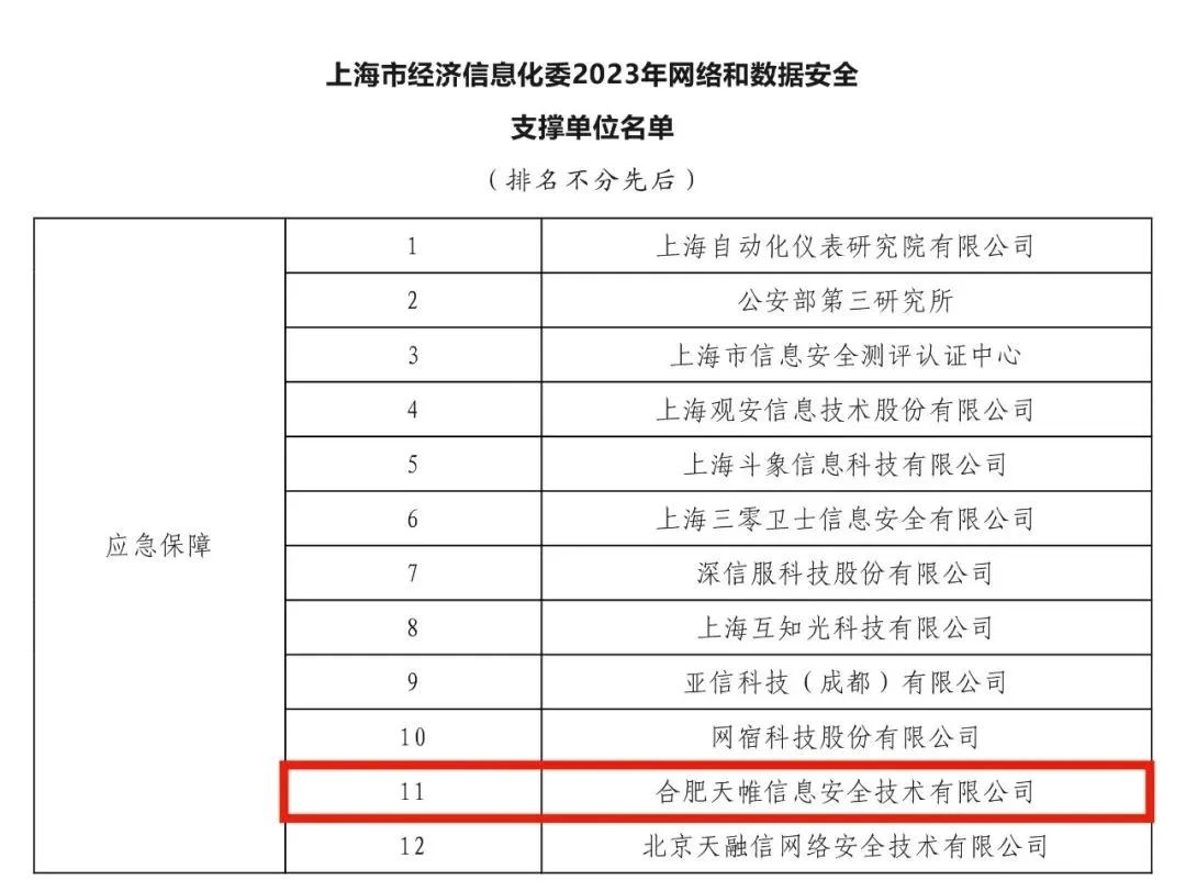 经过自主申报、资料审查、专家评审等环节,近日,上海市经济和信息化委员会发布2023年网络和数据安全支撑单位名单,英国上市公司官网365信息成功入选“应急保障”支撑单位!为上海市经济和信息化委员会提供包括网络安全监测分析、预警通报、安全评估、应急处置、数据安全等多方面7×24小时应急技术支撑服务。
