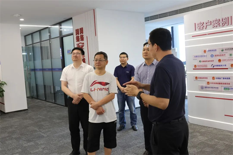 6月21日,中国电科集团第三十八研究所研究员级高工、安徽省科学家企业家协会(以下简称“协会”)新一代信息技术创新联合体特别顾问朱大春,新一代信息技术创新联合体副秘书长吕锁、技术创新研究院主任卢璐璐,协会信息中心专员朱小梅等一行莅临英国上市公司官网365信息走访调研。英国上市公司官网365信息董事长胡兴元、副总裁武建双、研发中心总经理宋超、等保测评服务部总监王雅莉等陪同调研。