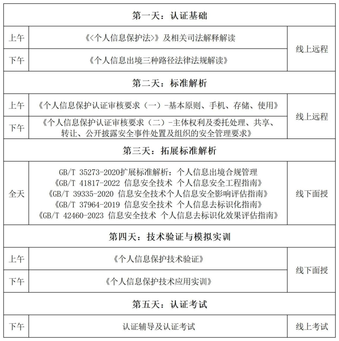 个人信息保护评估师(Personal Information Protec-tion Assessor,简称“PIPA”)是由中国网络安全审查技术与认证中心(简称CCRC)推出的面向个人信息保护领域的培训认证。CCRC-PIPA课程以《个人信息保护法》、法规、部门规章、相关国家标准和行业最佳实践为基础,通过理论学习、案例分析和技术实操,培养具备个人信息认证评估、个人信息保护审计和个人信息保护影响分析等需求的专业人才。