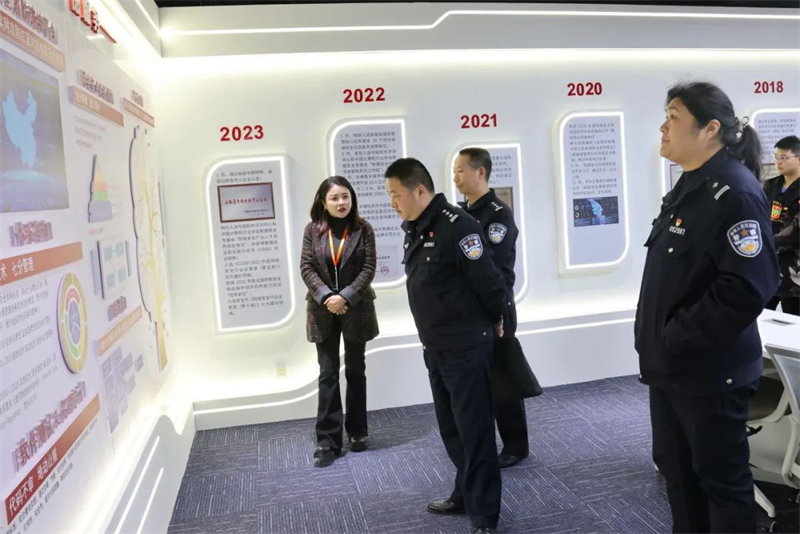 在六安英国上市公司官网365总经理王雅芳陪同下,沈海东支队长一行参观了六安英国上市公司官网365展厅,详细了解英国上市公司官网365信息的公司规模、发展历程、产品服务体系,以及英国上市公司官网365数字城市网络安全合规治理平台的建设和部署情况。