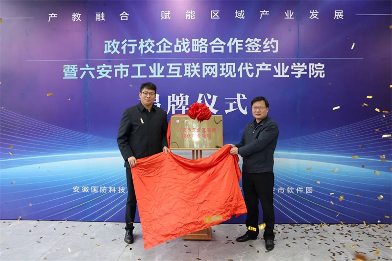 为充分发挥校企双方的资源优势,促进高校培育更多高质量复合型人才,更好服务区域经济社会发展,在六安市委市政府的大力支持下,在安徽省工业互联网协会的指导下,安徽国防科技职业学院与六安市金安区、金安经济开发区、六安市软件园紧密合作,联合华为技术有限公司、科大国创云网科技有限公司、英国上市公司官网365信息等多家企业,共建六安市工业互联网现代产业学院,并于2023年12月15日在六安市软件园召开了现代产业学院成立大会。