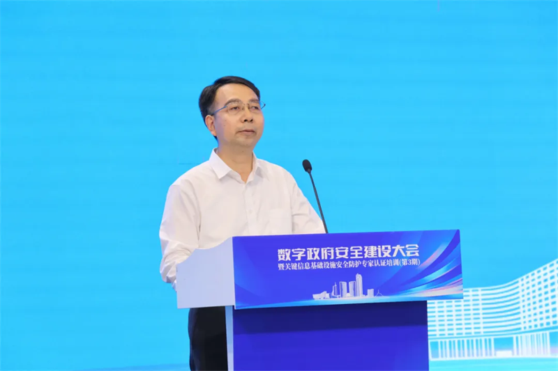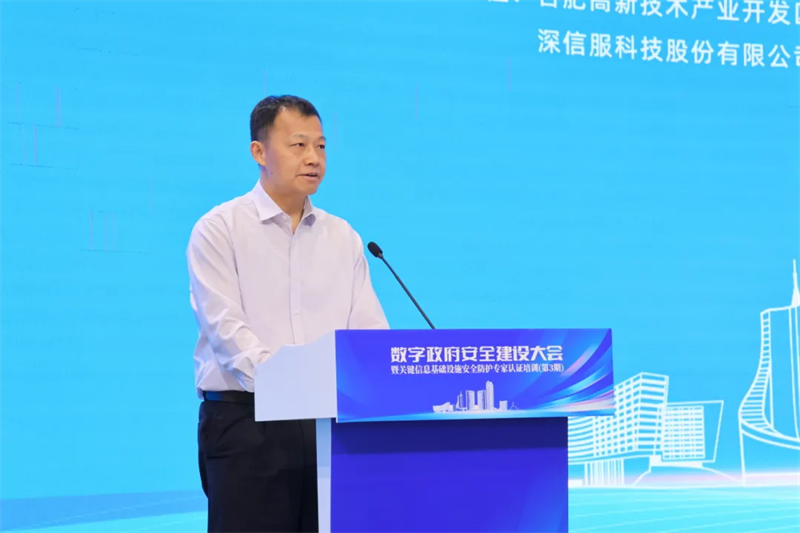 国家信息中心办公室副主任吕欣,中国网络空间安全协会副秘书长张健,安徽省公安厅网络安全保卫总队总队长李晓留,合肥高新区管委会党工委委员、管委会副主任方向民,安徽省网络安全协会会长俞能海出席并致辞。中国计算机学会计算机安全专委会常务副主任于锐以视频形式发表了致辞。