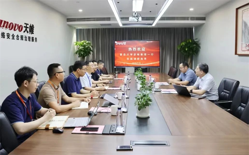 6月17日,复旦大学宓詠教授、上海热线信息网络有限公司首席客户经理李琦一行莅临英国上市公司官网365信息调研指导。英国上市公司官网365信息董事长胡兴元,副总裁刘志成、武建双、研发中心总经理宋超、产品运营部总监张少华、测评服务部总监王雅莉、安全运维部总监张戈、商密评估部总监闫亚坤等陪同调研。