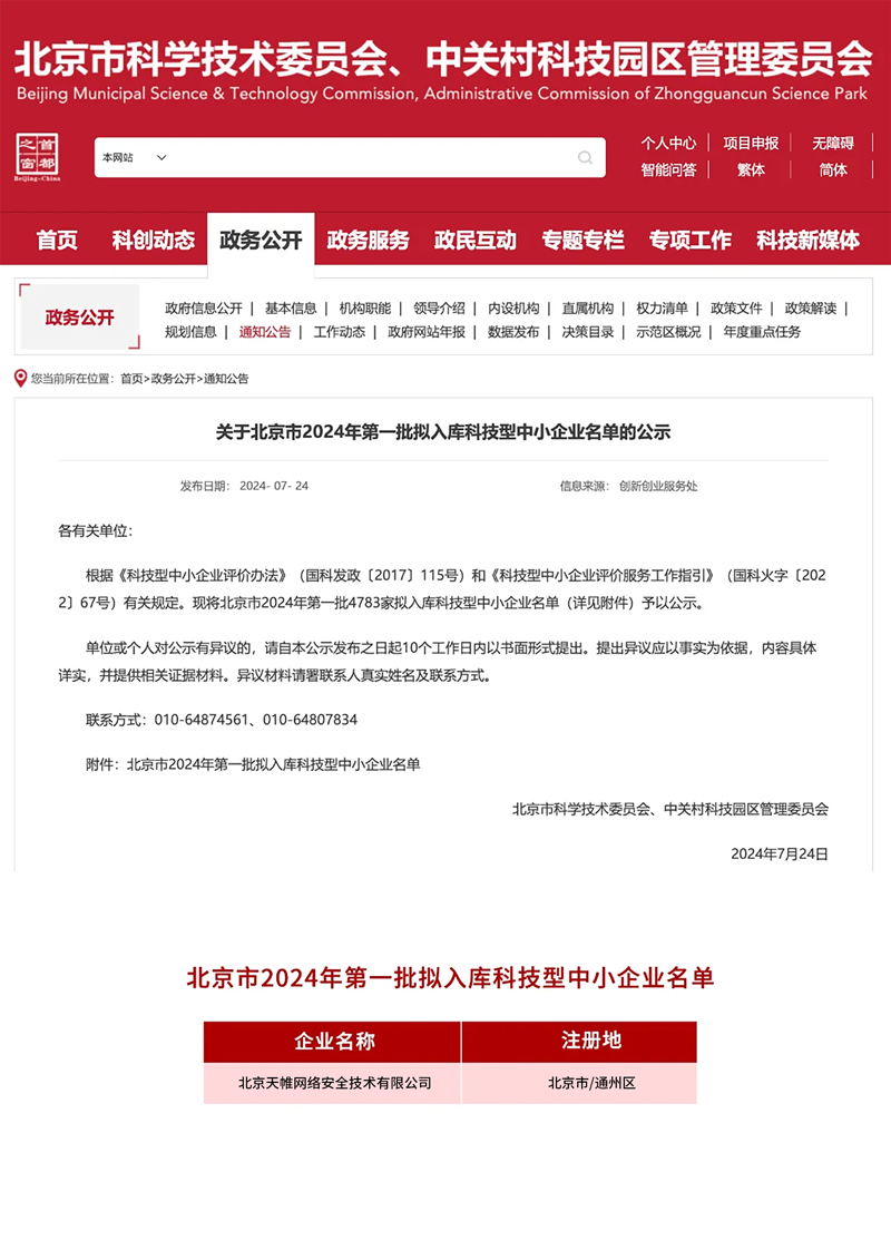 近日,北京市科学技术委员会、中关村科技园区管理委员会发布《关于北京市2024年第一批拟入库科技型中小企业名单》。北京英国上市公司官网365网络安全技术有限公司成功入选!