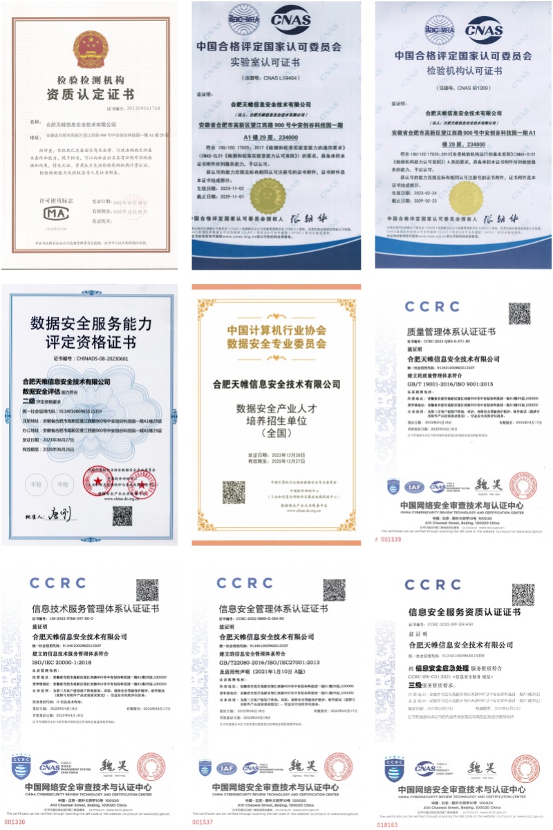 公司通过独立研发,拥有发明专利和软著150余项,先后通过国家高新技术企业、省级专精特新冠军企业、省级研发中心、省级技术中心、省级大数据企业、省级创新型中小企业、皖美品牌等认定,自主研发的网络安全合规治理平台为客户提供高价值安全服务。凭借强大的技术实力和优质服务,公司连续多年获评全国测评机构先进单位称号。