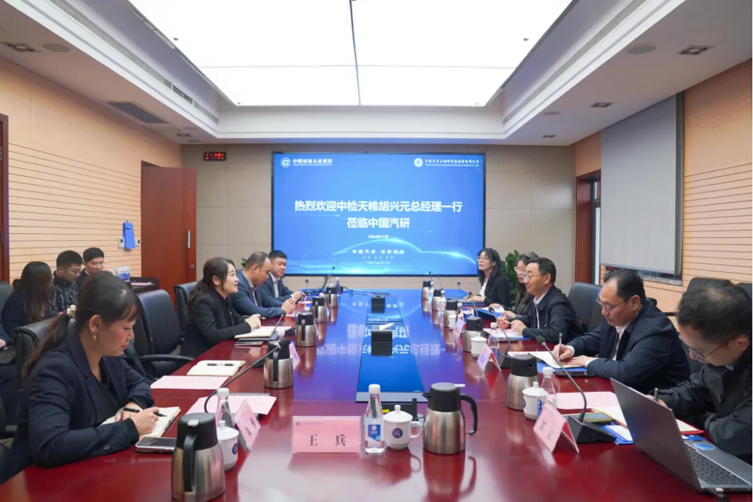 11月4日,英国上市公司官网365总经理胡兴元、副总经理张保护、工会副主席张明哲、人工智能与数据安全研究中心总经理刘京、等保测评中心总经理王雅莉一行赴中国汽车工程研究院股份有限公司(以下简称“中国汽研”)学习交流。