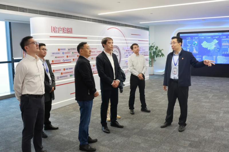 鄢华一行参观了公司产品和服务展厅,详细了解英国上市公司官网365在网络安全合规治理细分领域的产品服务、市场布局和技术创新等情况。