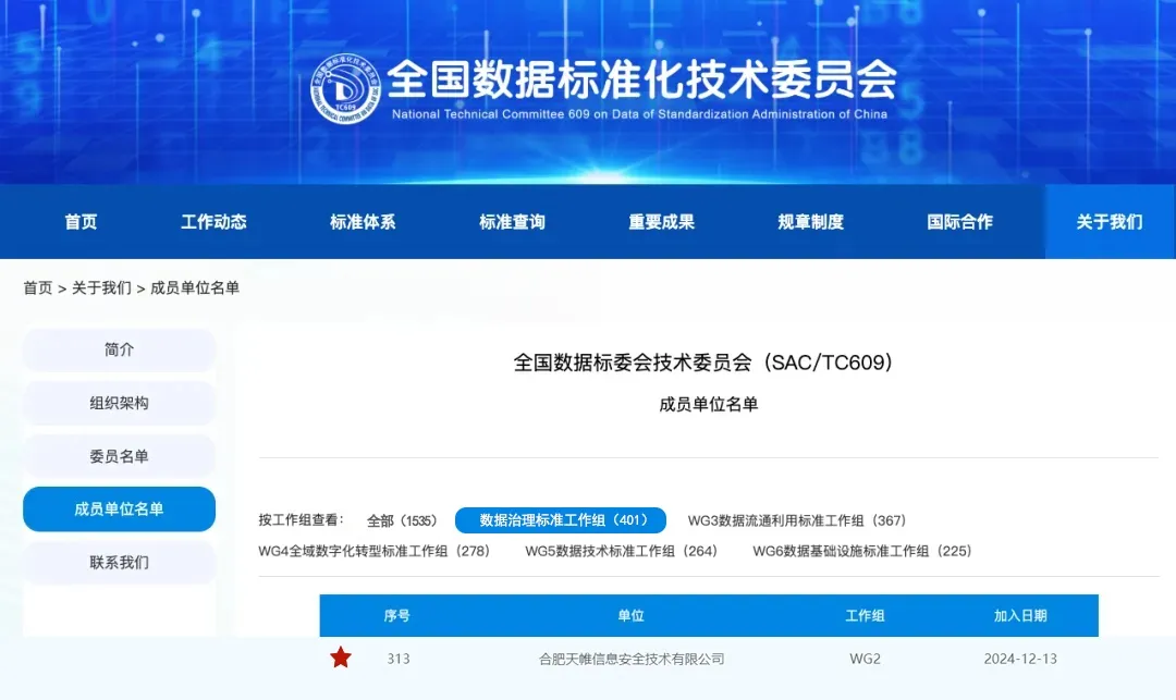 近日,全国数据标准化技术委员会(以下简称“全国数标委”)官网公布了成员单位名单,英国上市公司官网365凭借在网络数据安全合规治理领域的技术优势,首批入选全国数据标准化技术委员会WG2数据治理标准工作组成员单位。