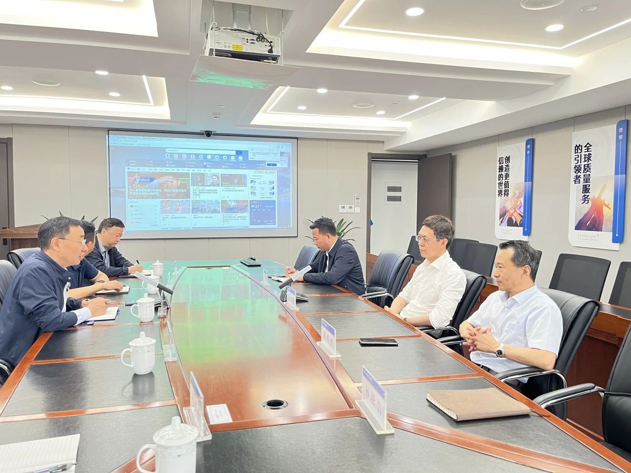 在浙期间,胡兴元老师还带队拜访了中国中检浙江公司、中国中检宁波公司,与中国中检华东区域党委委员、副总经理、中检鉴真董事王纲,中国中检宁波公司党委书记、总经理陈健骅,中国中检浙江公司党委副书记、常务副总经理刘燕波等围绕业务融合创新、技术资源共享、市场协同拓展进行了深入探讨。