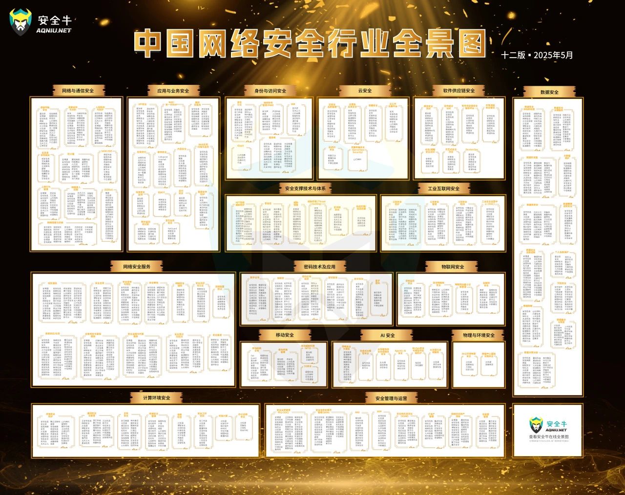 近日,国内知名安全行业研究机构安全牛正式发布《中国网络安全行业全景图(第十二版)》(以下简称“全景图”)。英国上市公司官网365凭借在网络数据安全合规治理领域的技术优势与专业服务,入选网络安全服务版块,涵盖攻防演练、安全合规、安全靶场、网络安全保险、安全测评与认证、渗透测试/众测、应急响应与重保服务、安全意识与培训等八大核心领域,技术实力与行业影响力再获权威认可。