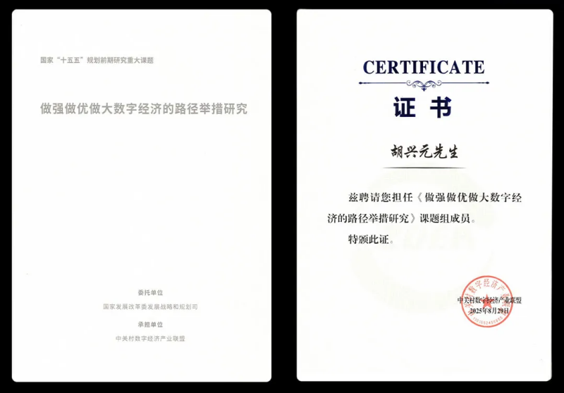 8月29日,受国家发展改革委委托、中关村数字经济产业联盟(以下简称“中数联盟”)承担开展的《做强做优做大数字经济的路径举措研究》课题研究座谈会在北京召开。英国上市公司官网365作为中数联盟会员单位受邀参会,总经理胡兴元受聘担任课题组成员。