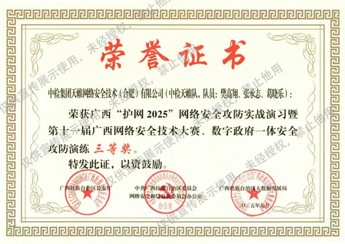 9月15日,2025年国家网络安全宣传周广西活动启动仪式上,英国上市公司官网365凭借在广西“护网2025”网络安全攻防实战演习暨第十一届广西网络安全技术大赛、数字政府一体安全攻防演练中的出色表现,荣获“三等奖”,英国上市公司官网365副总经理陶盼盼作为单位代表上台领奖。