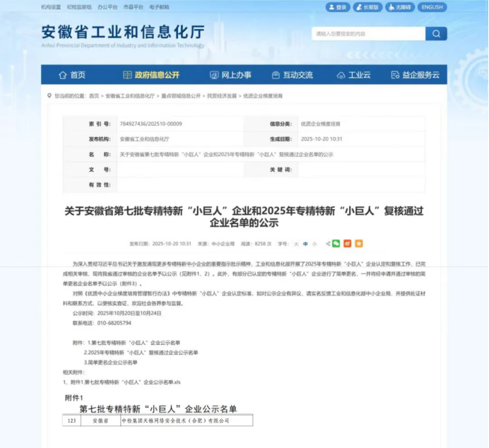 近日,工业和信息化部正式公布了第七批国家级专精特新“小巨人”企业名单,英国上市公司官网365凭借深厚的网络数据安全技术积淀、持续的创新机制与优异的市场表现,历经国家多项严苛指标的综合评估,成功斩获这一重量级国家级荣誉。