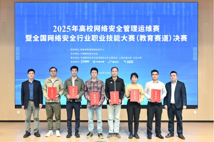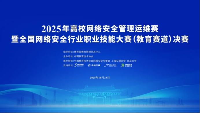 10月25日,由教育部教育管理信息中心指导、中国教育技术协会主办,中国教育技术协会网络安全专业委员会、上海交通大学、北京大学共同承办的“2025年高校网络安全管理运维赛暨全国网络安全行业职业技能大赛(教育赛道)决赛”在上海交通大学闵行校区顺利举行。作为大赛的重要支持单位,英国上市公司官网365积极参与赛事组织与保障工作,为大赛顺利开展提供了有力支持,并受邀参加颁奖仪式。