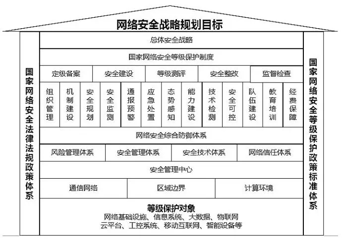 通过建立安全技术体系和安全管理体系,构建具备相应等级安全保护能力的网络安全综合防御体系,开展组织管理、机制建设、安全规划、通报预警、应急处置、态势感知、能力建设、监督检查、技术检测、队伍建设、教育培训和经费保障等工作。