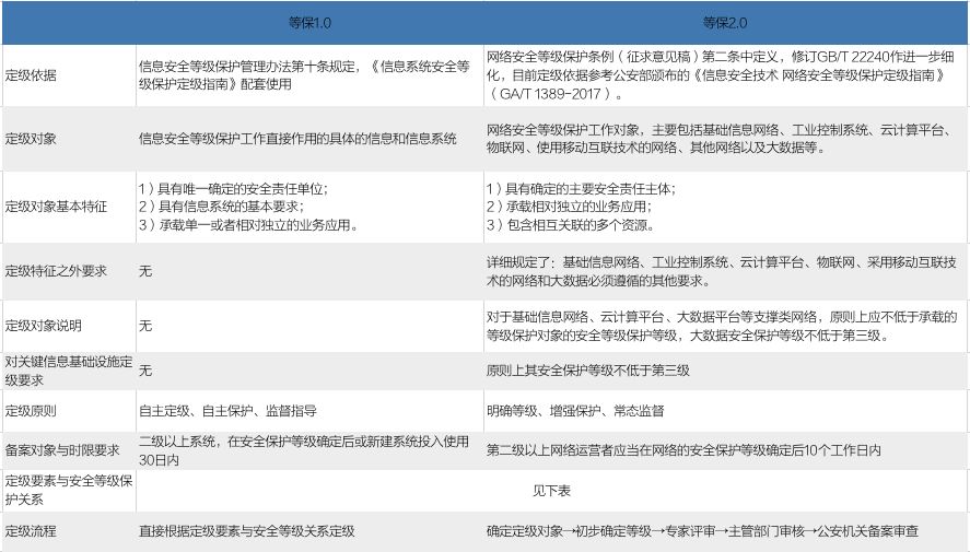 等保1.0定级的对象是信息系统,等保2.0标准的定级的对象扩展至:基础信息网络、云计算平台、物联网、工业控制系统、使用移动互联技术的网络以及大数据平台等多个系统,覆盖面更广。