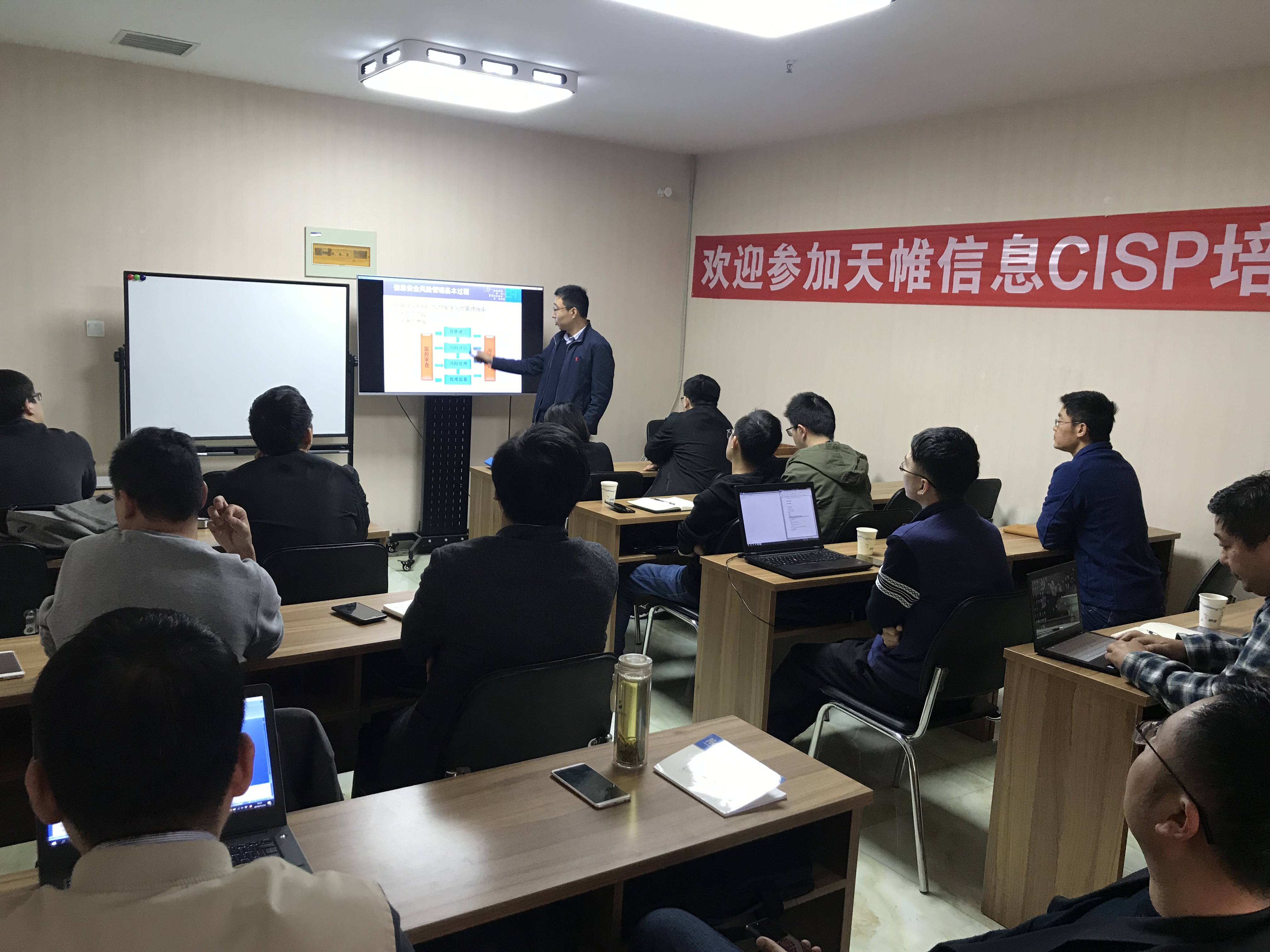 课程邀请了拥有丰富经验的CISP金牌讲师,结合实践经验配合教材知识重点及考试大纲为大家进行了为期5天的小班强化突击面授课程。围绕着信息安全保障概述、信息安全技术、信息安全管理、信息安全工程、信息安全标准和法律法规5大知识点进行教学及讨论。