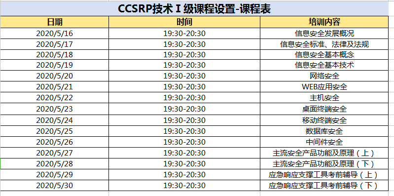 2020年5月16~5月30日,每晚19:30~20:30,每天1小时,一共15天,线上直播授课。
