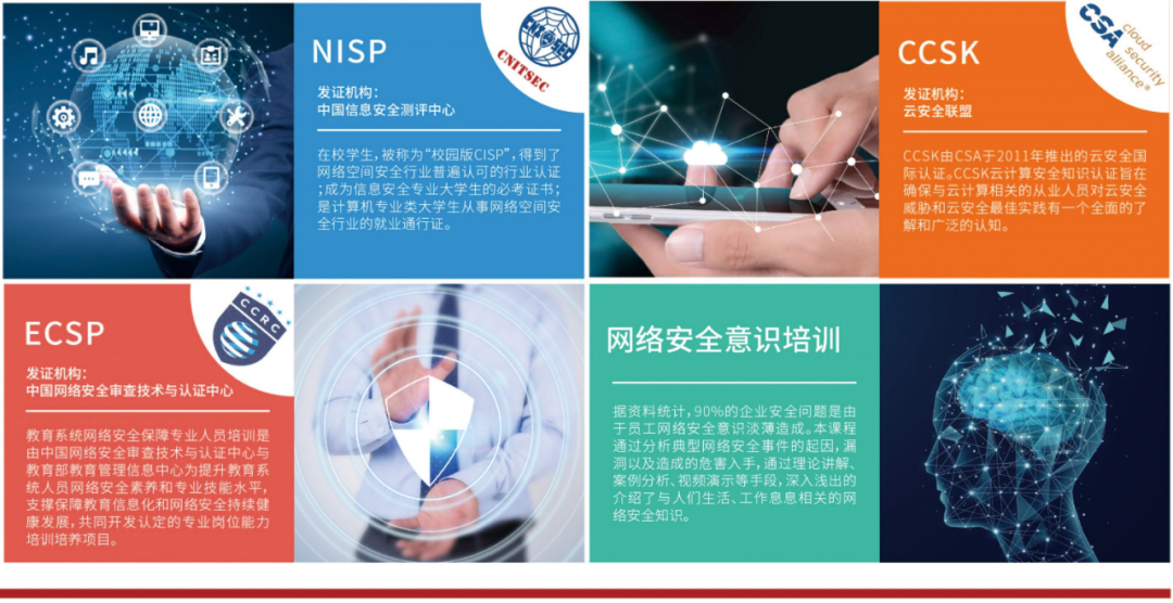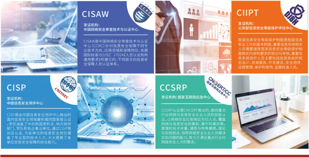网络安全行业薪资水平已经成为IT行业内领跑者。无论是出于自身职业发展的需要,还是单位网络信息安全工作的需要,了解关注网络安全教育培训都十分必要。目前国内网络安全行业认可度较高的专业认证主要有:CISP、CISAW、CIIPT、CCSRP、CCSK以及渗透测试培训。