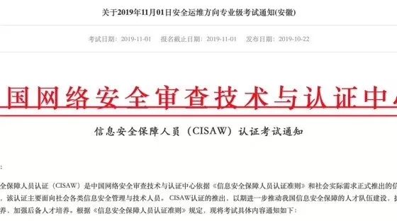 11月1日下午,本期培训班的全部培训圆满完成。经中国网络安全审查技术与认证中心监考员现场监督,学员参加了CISAW认证考试。11月8日中国网络安全审查技术与认证中心发布考试结果,15名学员除一人因故缺考外,12人(均为认真参加培训的学员)通过考试,通过率85.7%。 信息安全保障人员认证(CISAW)是中国网络安全审查技术与认证中心(CCRC)依据《信息安全保障人员认证准则》和社会实际需求正式推出,被国家各部门认可,广受信息安全从业人员欢迎的权威认证。该认证主要面向社会各类信息安全管理与技术人员推出,确保通过考试的专业人员具备相应的网络安全管理技能,能胜任网络安全管理相关岗位工作,对于企事业等单位用人有很强的指导性。 我司将继续加强教学质量、提升培训水平,为各企业、个人,提供CISAW、CISP、CCSRP等国家权威网络安全专业资质培训和认证,为网络安全建设事业输送更多专业人才。欢迎正在及拟从事网络安全管理及技术职业的人员和我们一起努力,共同进步。