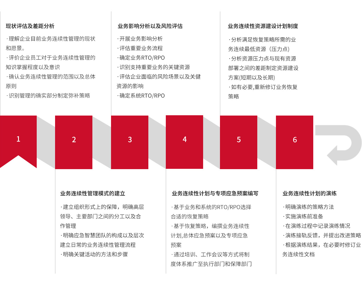 应急管理咨询主要依据ISO 22301业务连续性管理体系标准,帮助企业制定一套一体化的管理流程计划,使企业对潜在的风险加以辨别分析,帮助其确定风险造成的影响,并提供有效的管理机制来降低、规避或转移这些风险,减少重大灾难事件给企业带来的损失