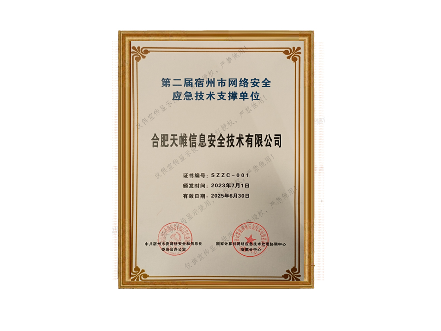 安徽省通信管理局优秀网络安全应急技术支撑单位
