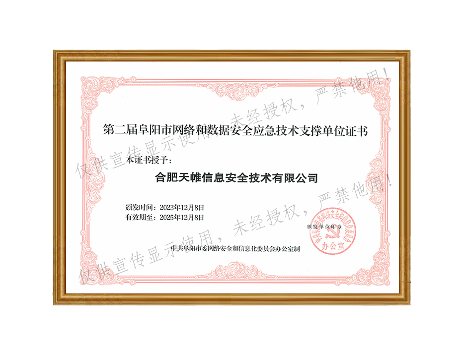 第二届阜阳市网络和数据安全应急技术支撑单位