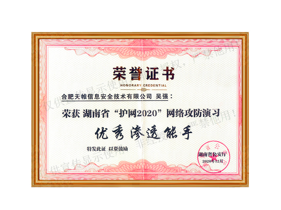 湖南省“护网2020”网络攻防演习优秀渗透能手-吴强