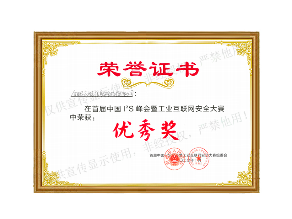 2020年首届中国I档l2S峰会暨工业互联网安全大赛优秀奖