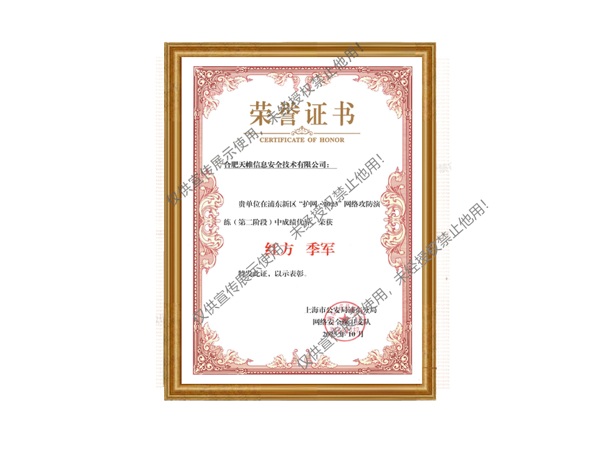 浦东新区“护网·2023”网络攻防演练(第二阶段)红方季军
