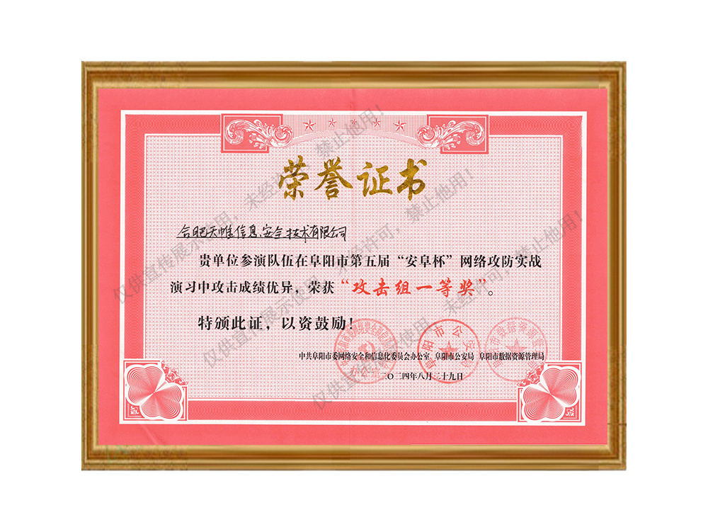 阜阳市第五届“安阜杯”网络攻防实验演戏攻击组一等奖